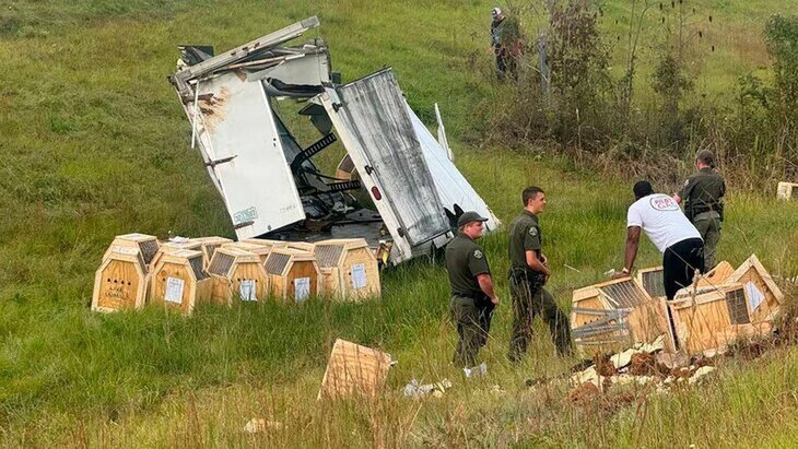 О происшествии стало известно в конце октября – грузовик, перевозивший обезьян, попал в ДТП на трассе I59. В результате дорожной аварии на свободе оказались макаки из Тулейнского университета, зараженные вирусами. Как отмечали правоохранители, животные агрессивны к людям и требуют средств индивидуальной защиты для контакта с ними.