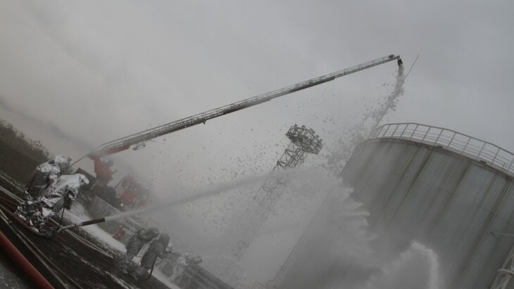 Пожар вспыхнул на Новошахтинском нефтеперерабатывающем заводе в ночь на 6 июня в результате атаки беспилотника. К тушению огня привлекли около 120 человек и 15 единиц техники.