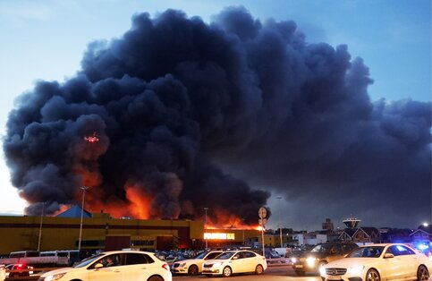 Пожар начался в здании на 65-м километре МКАД днем 8 октября. Тушение продолжается до сих пор. По предварительным данным, возгорание возникло на складе на цокольном этаже и распространилось на подземную парковку. Пострадали стоявшие там автомобили.