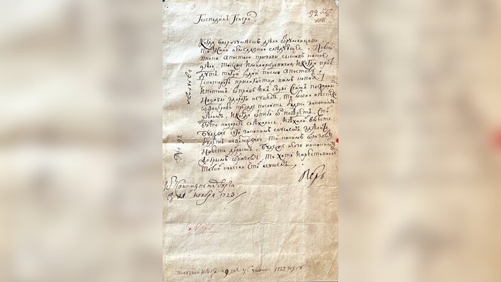 Похожий документ, датированный 11 ноября 1723 года, действительно выставлен на сайте указанного аукционного дома. Его стоимость оценивается в 80–100 тысяч евро.