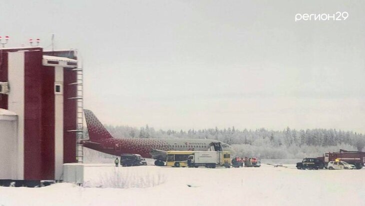 Инцидент произошел 9 января после посадки самолета, который летел из Санкт-Петербурга в Архангельск. Предварительно, борт пересек пределы ВПП передней стойкой шасси.