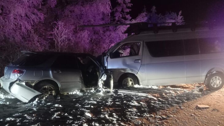 Накануне, 9 января, на федеральной трассе "Вилюй" в Горном районе случились две аварии. На 155-м километре водитель автомобиля Subaru Impreza выехал на встречную полосу и столкнулся с микроавтобусом Toyota Hiace. Пострадали 11 человек, в том числе четверо детей.