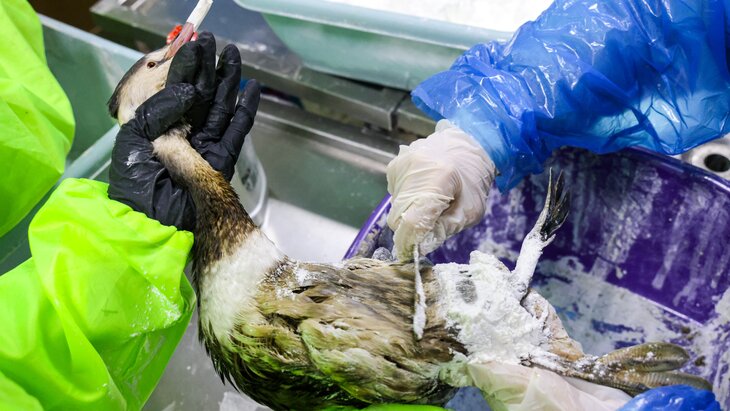 ПроисшествияБолее 200 испачканных мазутом птиц спасли в Сочи после крушения танкеров