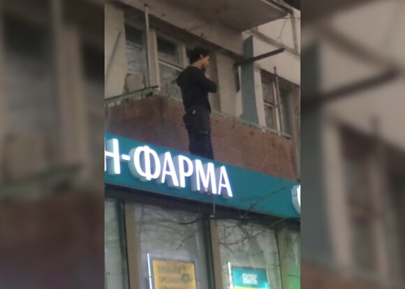 Мужчина забрался на козырек магазина у станции подземки. Внимание на него обратили прохожие, которые вызвали экстренные службы.