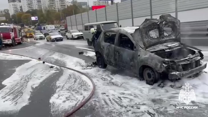 Движение в районе возгорания остается затрудненным. В связи с этим представители департамента призвали водителей выбирать пути объезда.