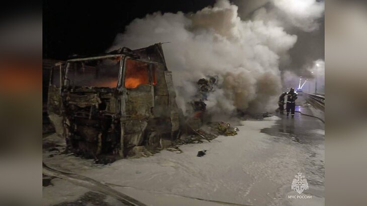По данным МЧС, огонь удалось потушить оперативно. Для ликвидации пожара привлекались 22 специалиста и 6 единиц техники. В ведомстве подчеркнули, что водитель не пострадал, а причину возгорания будут определять эксперты.