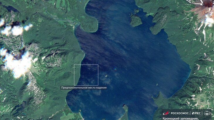 Российский спутник дистанционного зондирования Земли "Канопус-В" сфотографировал место крушения вертолета Ми-8 в Камчатском крае с орбиты. Снимок, на котором видно озеро и отмечено место падения вертолета, опубликовал "Роскосмос".