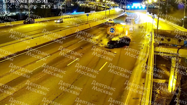В департаменте также опубликовали видео с моментом аварии. На нем видно, что легковой автомобиль въехал в большегруз боковой стороной на большой скорости.
