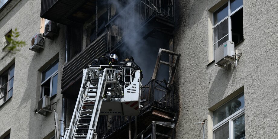 Пожар произошел 14 мая. Горели балконы на 5-м, 6-м и 7-м этажах в жилом здании старой постройки. Площадь пожара составила 80 квадратных метров.