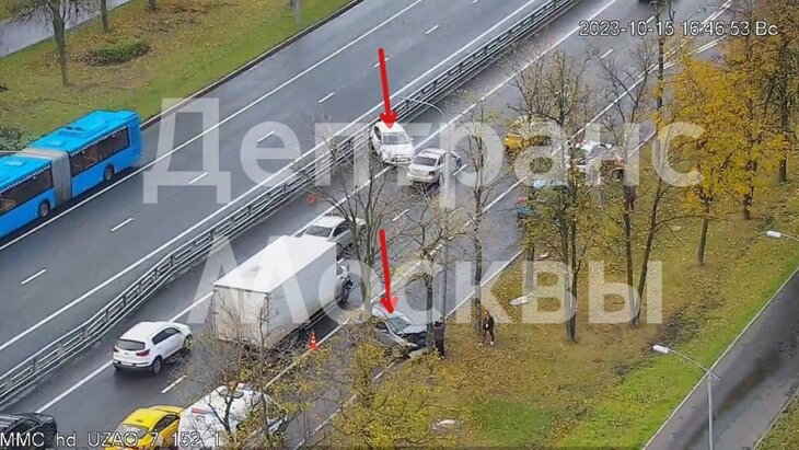 Столкновение двух автомобилей произошло на Профсоюзной улице, в районе дома 118, в Москве. Об этом сообщается в телеграм-канале Дептранса.