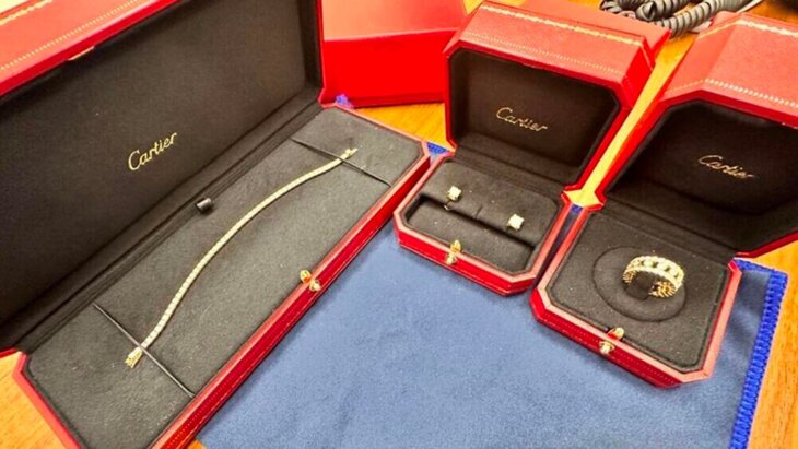 Драгоценности обнаружили при досмотре ручной клади россиянки. В ее сумке находились кольцо Broderie De Cartier, браслет Lignes Essentielles и серьги из коллекции 1895 Stud Earrings с бриллиантами – все в фирменных коробках. Экспертиза подтвердила, что украшения выполнены из золота 750-й пробы и инкрустированы бриллиантами.
