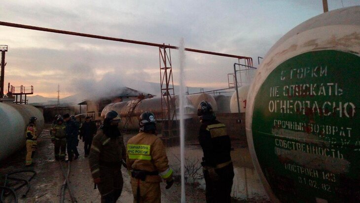 Цистерна с сжиженным газом загорелась в поселке Новый Хушет на окраине Махачкалы 16 февраля. На место происшествия работают 63 сотрудника и 19 единиц техники от РСЧС, из которых 26 человек и 7 единиц – от МЧС.