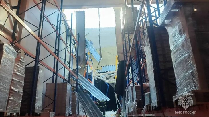 В результате ЧП пострадала работница склада, ее госпитализировали. В настоящее время специалисты разбирают завалы.