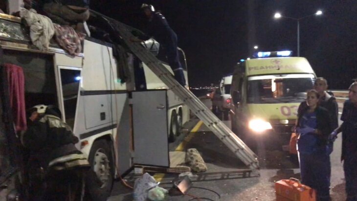 Авария произошла на 525 километре трассы, возле поворота на Новую Усмань. Один из автобусов стоял на обочине, когда в него въехал второй. Детей среди пострадавших нет. Один автобус ехал в Карачаево-Черкессию, второй в Ставропольский край.