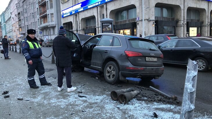 "Водитель автомобиля Audi въехал в рекламный щит, расположенный на территории пешеходной зоны по адресу: Тверской бульвар, дом 2", – сказал собеседник агентства.
