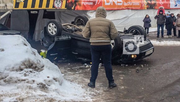 Авария произошла днем 20 января возле торгового центра на улице Маршала Неделина, когда автомобиль выезжал с открытой многоярусной парковки. Машина вылетела с третьего этажа паркинга крышей вниз. В автомобиле находились три человека: женщина, ее брат и муж, который получил травмы и был госпитализирован. Другие автомобили в результате ДТП не пострадали.