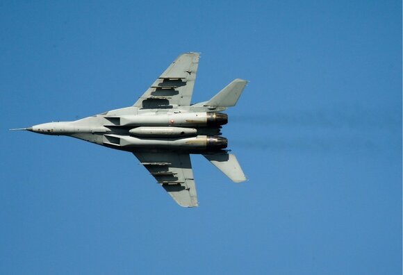 Истребитель МиГ-29 уронил дополнительные топливные баки при взлете с аэродрома в Ейске. В результате произошедшего никто не пострадал.