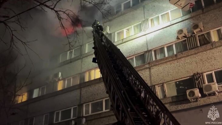 Возгорание произошло вечером 21 февраля. Из горящего здания эвакуировали 200 человек.
