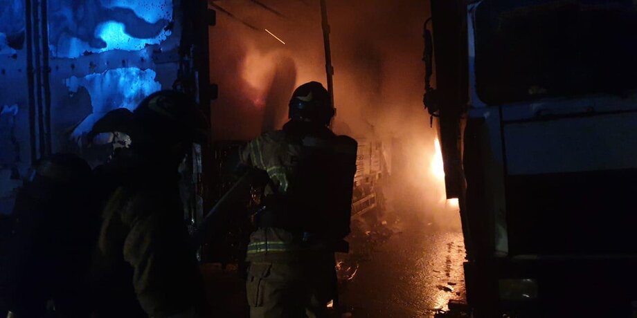 По данным источника в экстренных службах, рядом со складом загорелись три грузовых автомобиля. В самом здании может храниться автопродукция.
