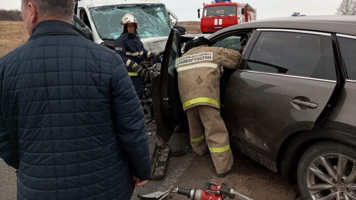 Авария произошла на дороге Дюртюли – Нефтекамск вблизи населенного пункта Новобиктово. Там столкнулись микроавтобус Peugeot Boxer, в котором находились 14 человек, и легковой автомобиль Mazda CX-9.