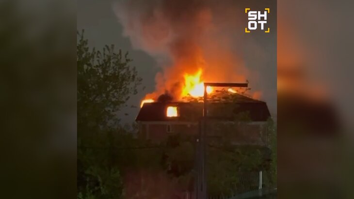 Огонь распространился по крыше дома на площади 600 квадратных метров. Предварительно, в результате пожара никто не пострадал. К тушению огня привлечены 39 сотрудников и 12 единиц техники МЧС.
