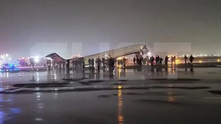 Отмечается, что столкновение произошло, когда самолет в плохих погодных условиях двигался в направлении гейта. На борту находились около 100 пассажиров.