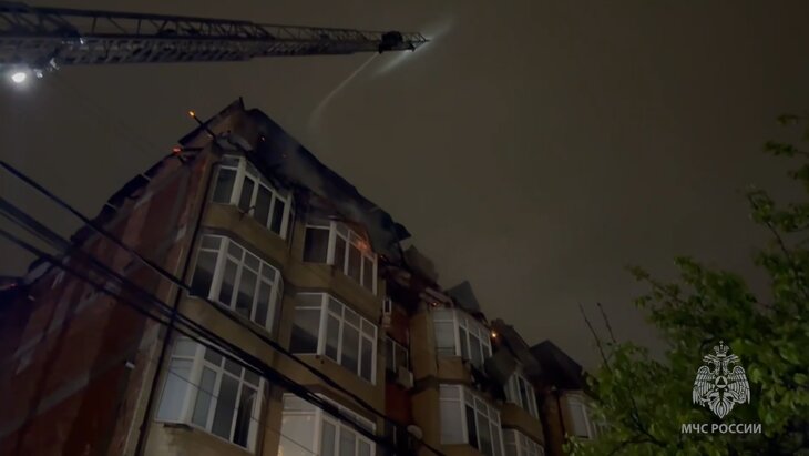 Позже кровля горящего дома частично обрушилась и упала на стоящие рядом постройки. Спасатели эвакуировали из здания 75 жильцов, в том числе 24 детей, никто из них не пострадал.