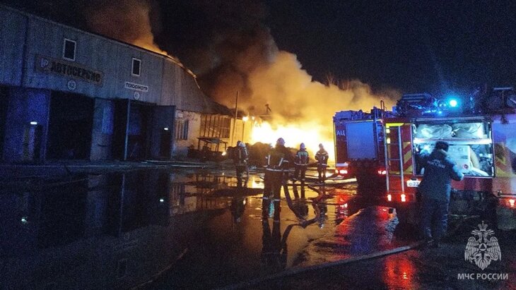 По данным ведомства, на улице Федосеенко загорелись резина на открытой площадке и здание автосервиса. К тушению огня привлечены около 50 сотрудников и 15 единиц техники МЧС.