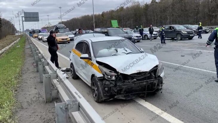 Один человек пострадал в результате массовой аварии на Киевском шоссе. Травмы получила жена таксиста, ставшего участником ДТП, рассказал он сам в беседе с Москвой 24.