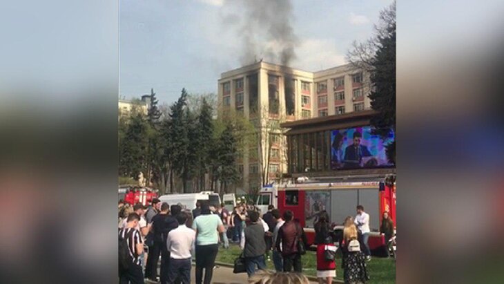 Из здания вуза эвакуировали около трех тысяч человек. По некоторым данным, из-за пожара в здании частично обрушился потолок.