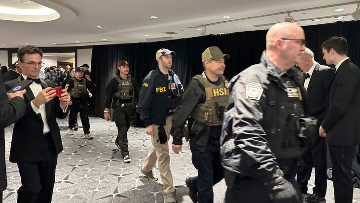 Инцидент произошел в отеле Washington Hilton, где проходил ужин ассоциации корреспондентов Белого дома с участием Трампа. В какой-то момент участники мероприятия услышали звуки выстрелов. После этого агенты Секретной службы срочно эвакуировали Трампа, его жену Меланию и прочих чиновников из зала.