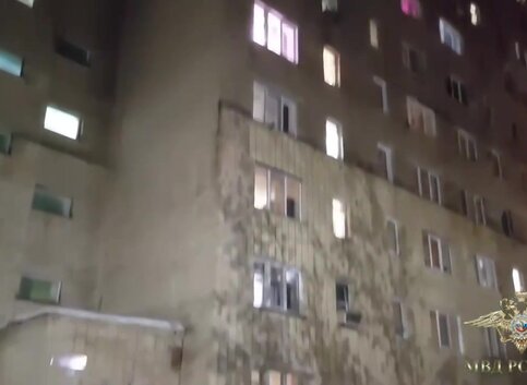 На видео показано, как найденного ребенка выводят из подъезда многоквартирного дома. После этого следуют кадры с задержанием подозреваемого в похищении девочки: мужчина лежит на полу в наручниках.
