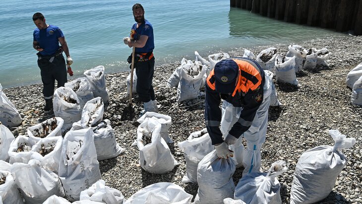 С трех участков в Туапсе собрано 4 165 кубометров загрязненного грунта и водомазутной смеси после разлива нефтепродуктов, произошедшего из-за атаки украинских БПЛА. Об этом сообщается в телеграм-канале оперштаба Краснодарского края.