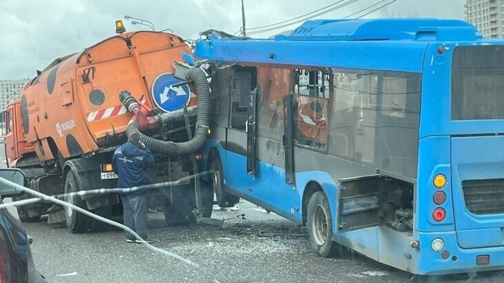 Рейсовый автобус врезался в машину дорожных служб на Варшавском шоссе. Об этом сообщила Госавтоинспекция Москвы в мессенджере MAX.