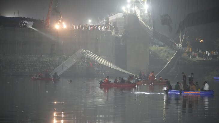 Мост на плотине Мачху в Морби был закрыт на протяжении двух лет, а день назад его открыли после реконструкции. Спасательную операцию в этой районе осложняют сильное течение реки и темное время суток. Премьер-министр Индии Нарендра Моди распорядился выплатить семьям погибших по 200 тысяч рупий. Раненым перечислят по 50 тысяч рупий.