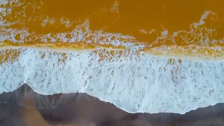 По некоторым данным, это обычное природное явление, которое происходит после штормов. Во время непогоды волны поднимают песок, который впоследствии долго оседает. Из-за этого вода окрашивается в желтый цвет.