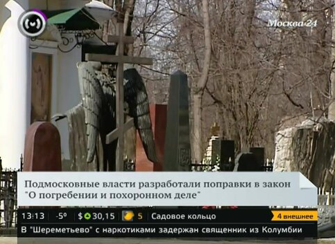 Власти предлагают увеличить размер штрафов для москвичей, которые будут хоронить своих близких на незарегистрированных участках областных кладбищ. Согласно разработанным поправкам в закон "О погребении и похоронном деле", за несанкционированное захоронение с физических лиц будут взыскивать почти 3 тысячи рублей, а с юридических – до 110 тысяч рублей.