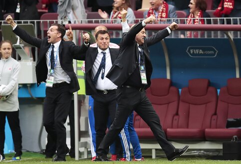 Российские футболисты открыли счет на первых минутах игры. Голами в ворота соперников отличились Денис Черышев и Юрий Газинский. Затем на 71-й минуте матча нападающий Артем Дзюба забил третий гол.