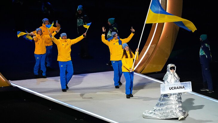 СпортПлакат украинской сборной на церемонии открытия ОИ-2026 несла россиянка