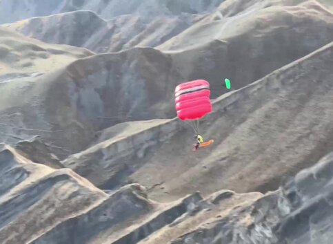Уточняется, что опасный трюк был совершен в селе Кули Кулинского района. Сначала Цибулько разогнался на трапе с отвесной скалы, а потом прыгнул в пропасть. Спустя пару секунд он отпрыгнул от транспортного средства, а следом у мужчины и его мотоцикла открылись парашюты.