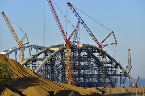 ГородСтроители соединили таманскую часть моста в Крым с фарватерной аркой