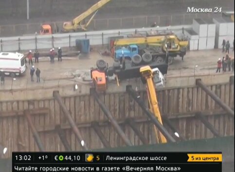 "Котлован 30 метров глубиной. Сам автокран лежит вниз головой", - рассказал Роман телеканалу "Москва 24".