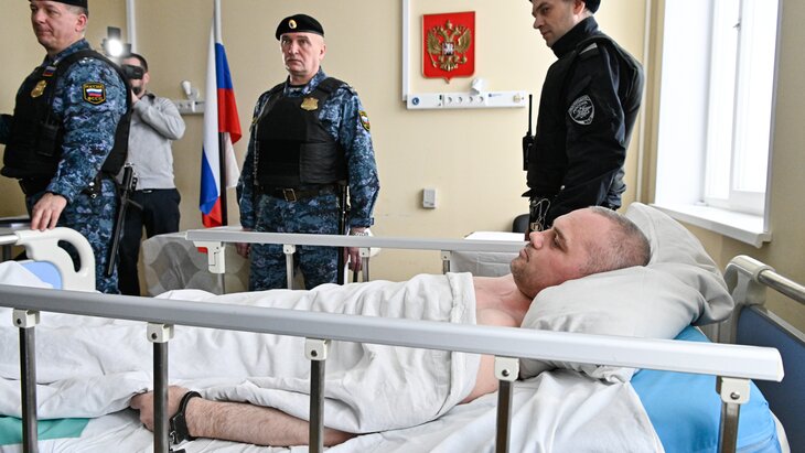 Фигуранта дела привезли в импровизированный зал судебного заседания в палате номер 8 в Апатитско-Кировской больнице на кровати. Заседание суда проходило в больнице, поскольку напавший на Чибиса был ранен при задержании. Мужчина не может передвигаться самостоятельно.