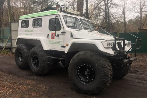 В одной машине поместится шесть человек. Кроме того, там оборудованы лежачие места для перевозки пострадавших в лесах людей – заблудившихся, получивших травмы. Снегоболотоход может перевезти около 2,5 тонны груза.
