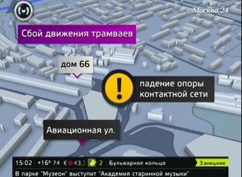 Из-за падения опоры трамвайной контактной сети на северо-западе столицы образовался серьезный затор. Инцидент произошел по адресу: улица Авиационная улица, дом 66.