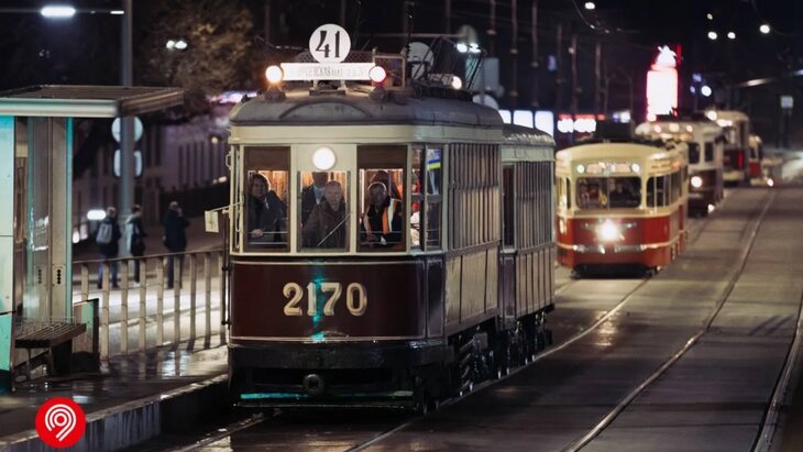 Благодаря ночным испытаниям специалисты могут отладить движение колонны, обеспечить равномерность хода для каждого вагона, расставить все 16 трамваев на выставке и убедиться в том, что все готово к параду.