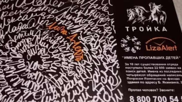 В кассах столичного метро появилась лимитированная "Тройка", на лицевой стороне которой изображено посвященное пропавшим детям граффити на Большой Якиманке, созданное художником-каллиграфом Покрасом Лампасом в сотрудничестве с поисково-спасательным отрядом "Лиза Алерт". На проездном также размещен номер горячей линии отряда.