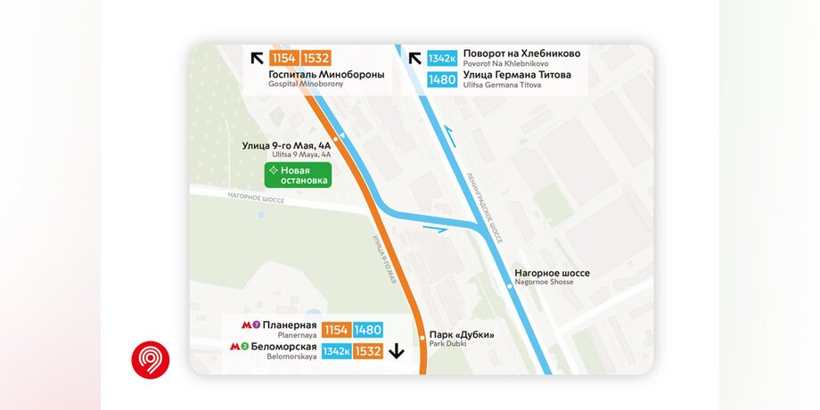 Пригородные маршруты № 1154, 1342к, 1480 и 1532 получат остановку "Улица 9 Мая, 4А" в Химках. Там же для пригородных маршрутов № 1342к и 1480 добавится остановка "Школа" в Коммунальном проезде.