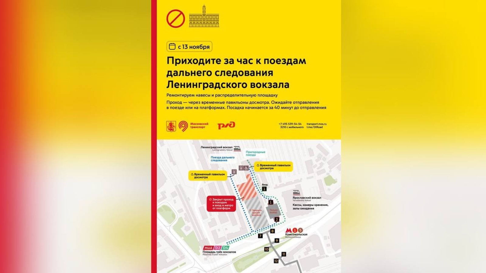 ТранспортСхема прохода к поездам изменится на Ленинградском вокзале с 13 ноября