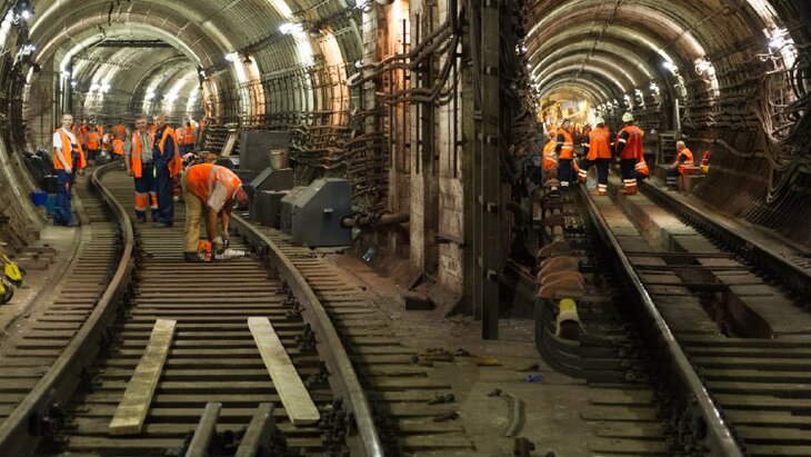 В настоящее время ремонтные работы ведутся на участке протяженностью 14 километров от "Белорусской" до "Курской". Чтобы не мешать движению поездов, подкладки под рельсами меняют ночью. У специалистов есть немногим более двух часов, пока контактный рельс обесточен.